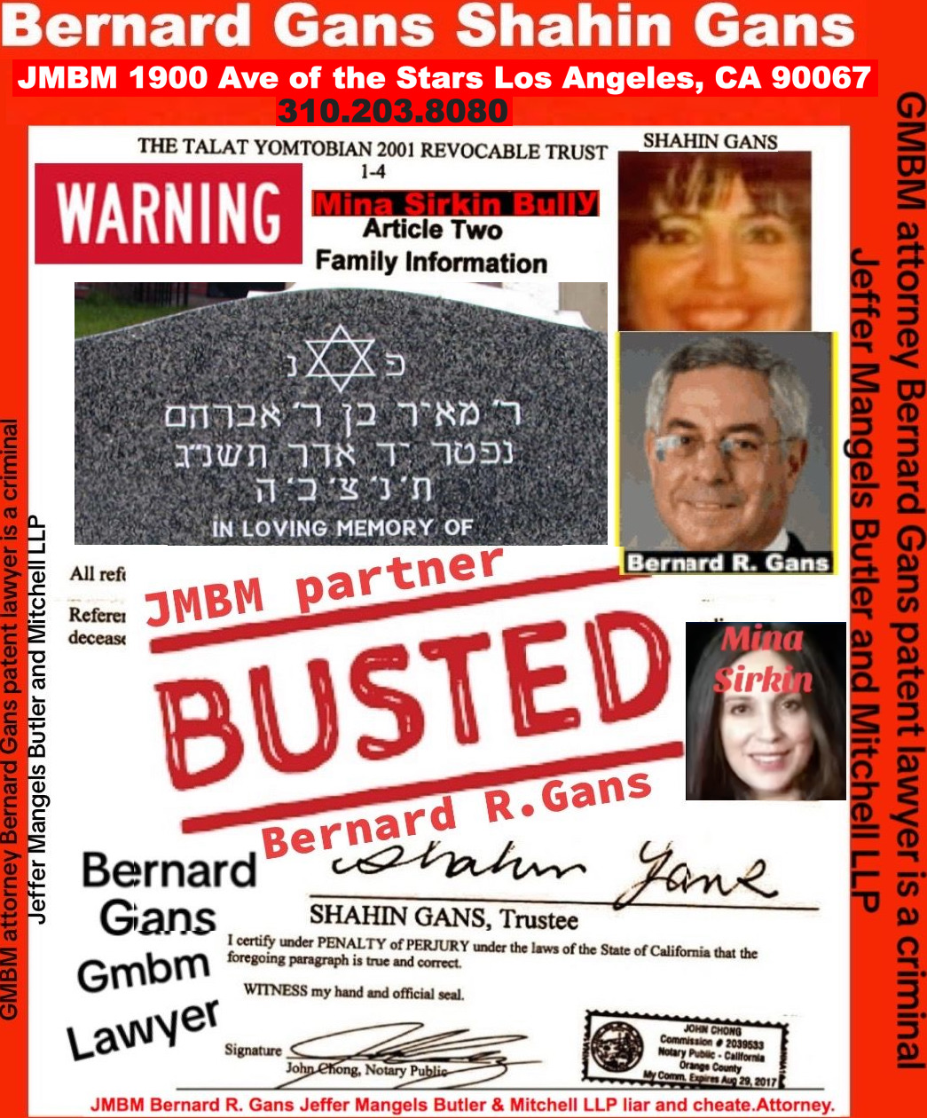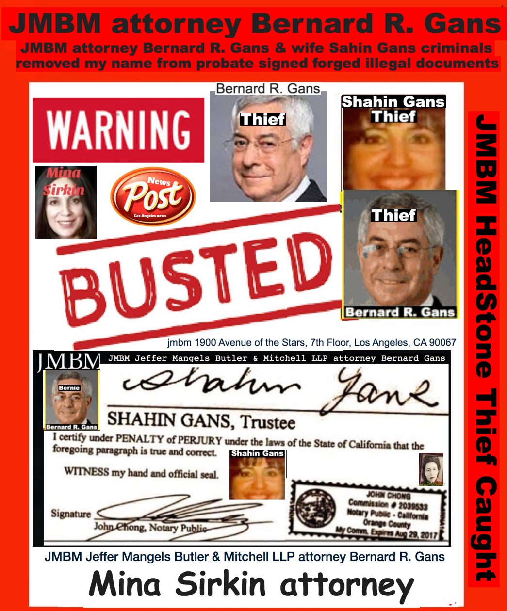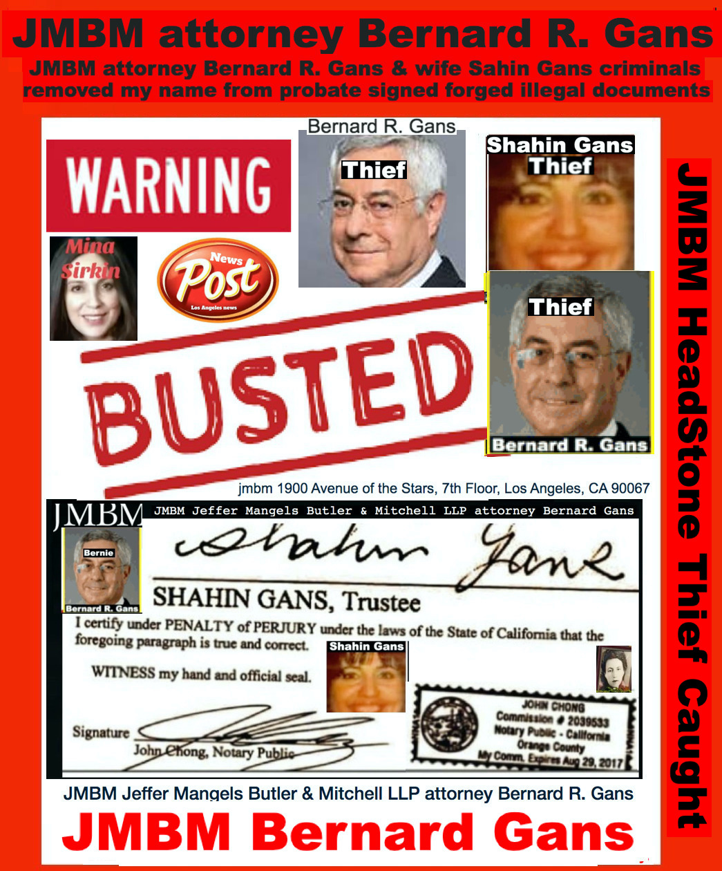 and a Criminal Bernard Gans Shahin Gans Century city thief jmbm busted partner attorney Bernard Gans engaging in criminal illegal unlawful acts Century city