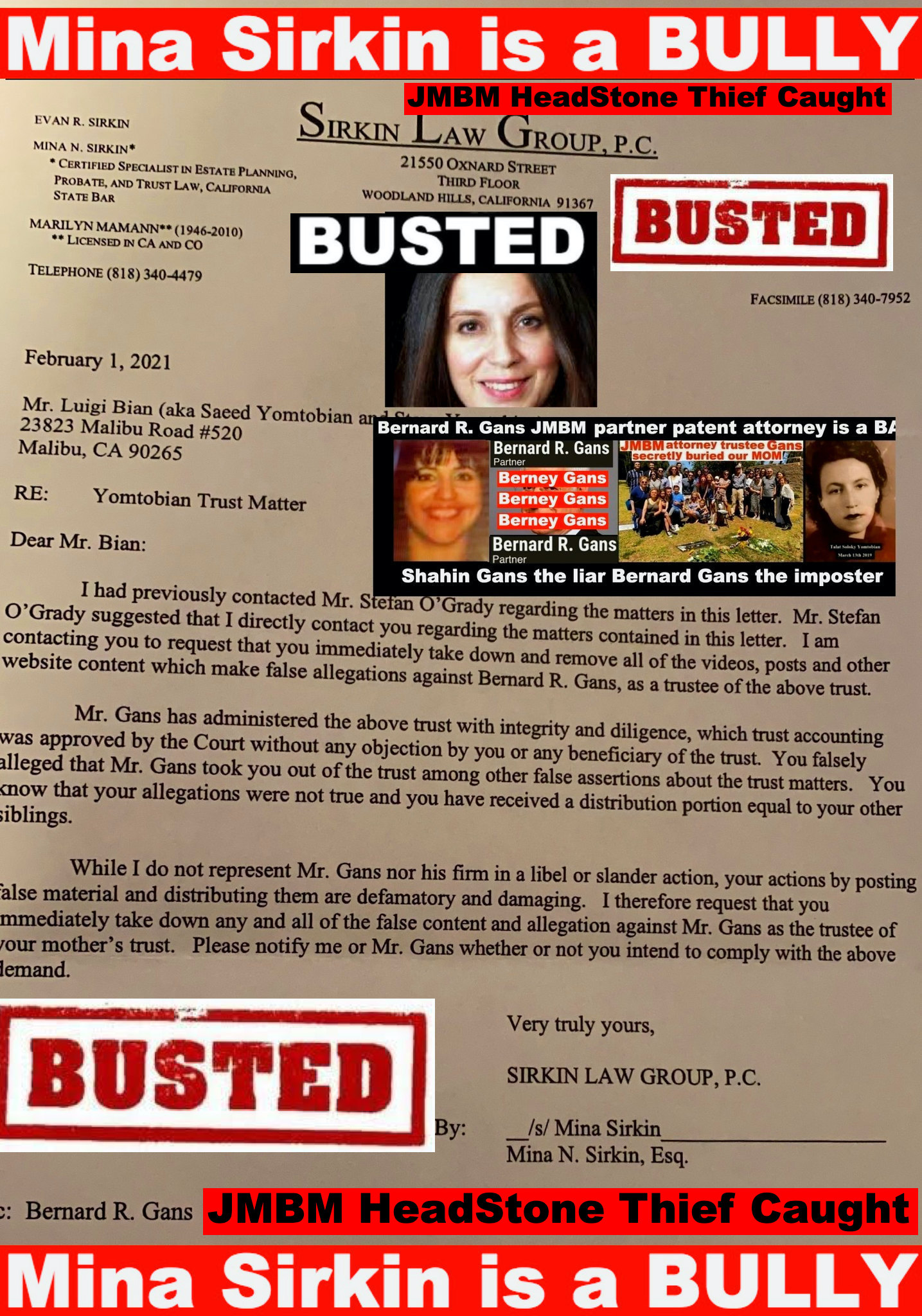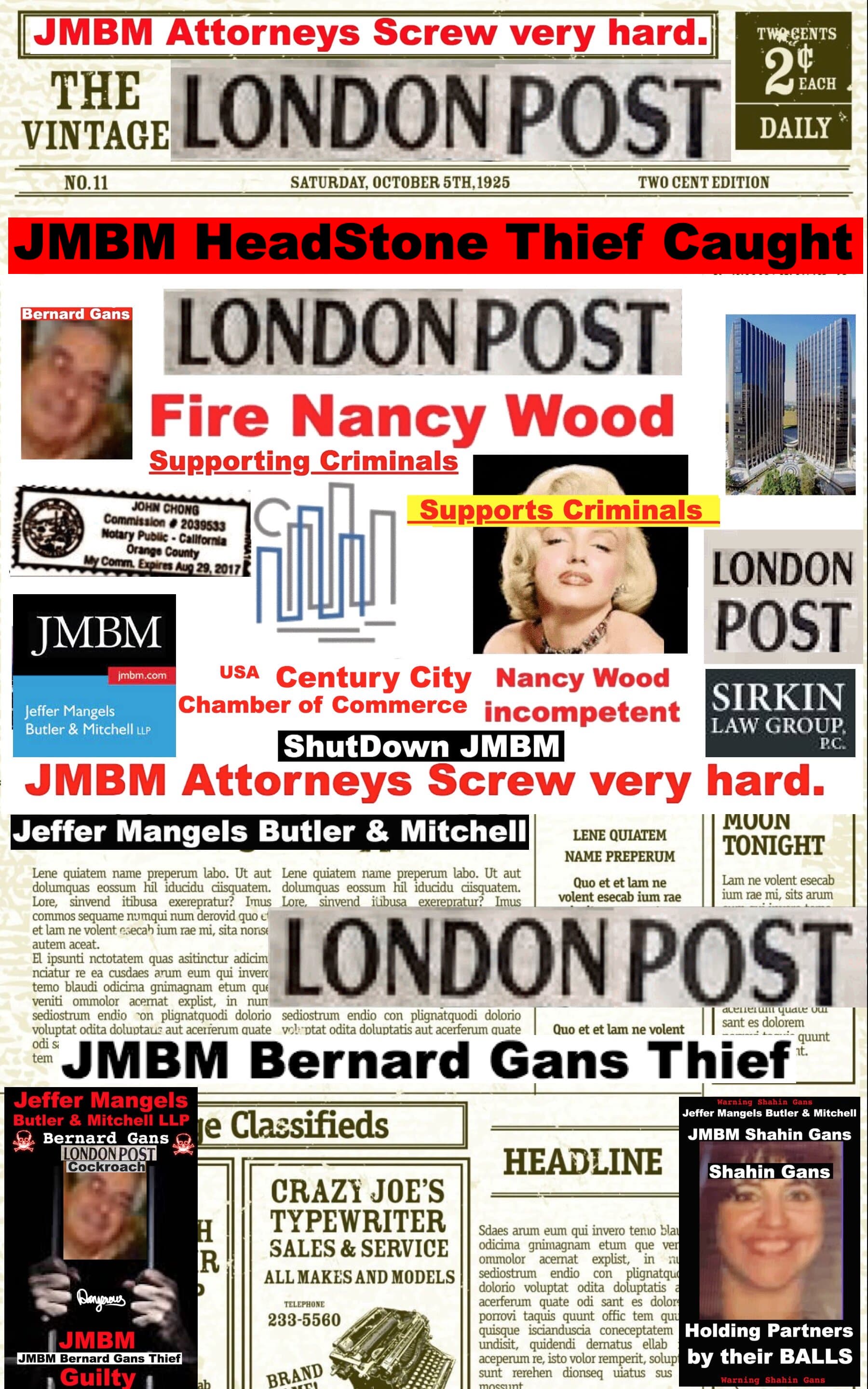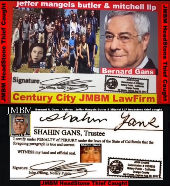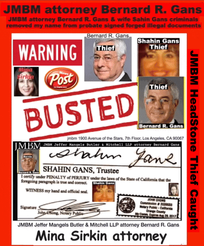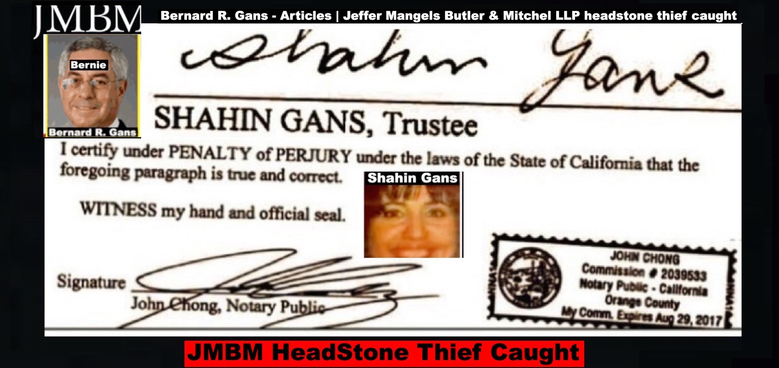 and a Criminal Bernard Gans Shahin Gans Century city thief jmbm busted partner attorney Bernard Gans engaging in criminal illegal unlawful acts Century city